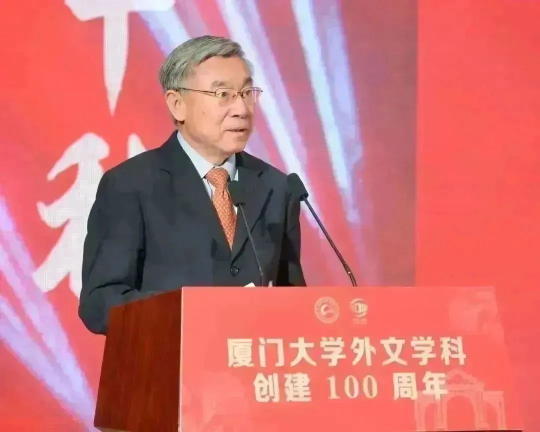 中国外文局原副局长黄友义代表合作单位致辞,他高度认可了厦大外文学科的特色和优势,细数了外文局与厦大外文丰硕的合作成果,表达了对外文学科创建百年的祝福并期待未来双方展开全方位、多层次、高质量的务实合作。