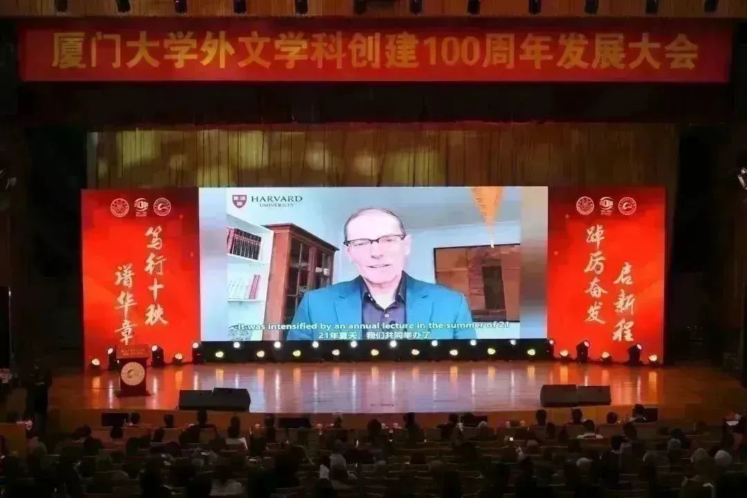 哈佛大学讲席教授马丁·普契纳在视频致辞中回顾了过去两年来与厦大外文的友好合作,他表示,厦门大学始终具有开放的思想与多元的文化,期待能进一步推进外文学院的国际化进程。
