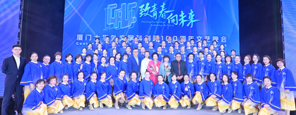4月8日晚,“致青春·向未来”外文学科创建100周年文艺晚会在厦门大学建南大会堂举办。嘉宾、院友们和学院师生欢聚一堂,共襄盛举,见证外文荣光。