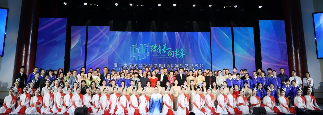 4月8日晚七点半,“致青春·向未来”外文学科创建100周年文艺晚会在厦门大学建南大会堂举办。嘉宾、院友们和学院师生欢聚一堂,共襄盛举,见证外文荣光。