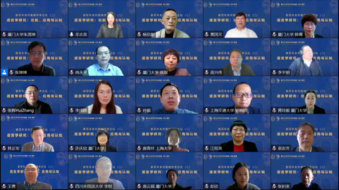 3月25日至26日,厦门大学外文学科新百年系列高端学术论坛之“语言学研究:功能、应用与认知”论坛成功举办。本论坛由厦门大学主办、厦门大学外文学院和外国语言文学研究所共同承办,是为庆祝厦门大学外文学科创建百年而举办的一场高规格学术交流活动。会议邀请国内外知名学者作主旨发言、平行论坛发言,举办工作坊,旨在进一步拓展语言学研究的学术空间,博采众长、深入研讨交流,为构建具有中国特色的语言学研究学术话语体系凝聚磅礴力量。
