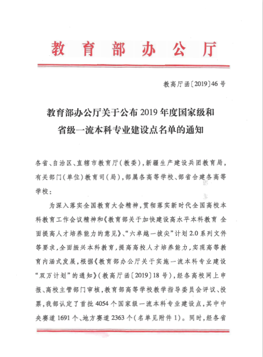 近日,教育部办公厅发布《教育部办公厅关于公布2019年度国家级和省级一流本科专业建设点名单的通知》(教高厅函〔2019〕46号),我院英语专业入选国家级一流本科专业建设点。