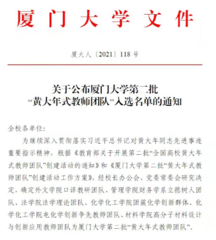 2021年8月,厦门大学第二批“黄大年式教师团队”创建活动遴选结果公布,外文学院口译教研团队榜上有名,已走过四十多年光辉岁月的厦大口译“老团队”在新百年征程上迈开了“新步伐”。
