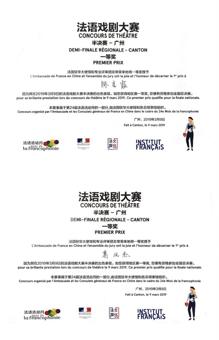 3月9日,由法国驻华大使馆和驻广州总领事馆组织的第三届法语戏剧大赛半决赛(华南赛区)在广州西瓜剧场举行,厦门大学外文学院法语语言文学系2017级本科生陈星霞、萧凤杰代表厦门大学参赛,斩获了一等奖的好成绩。