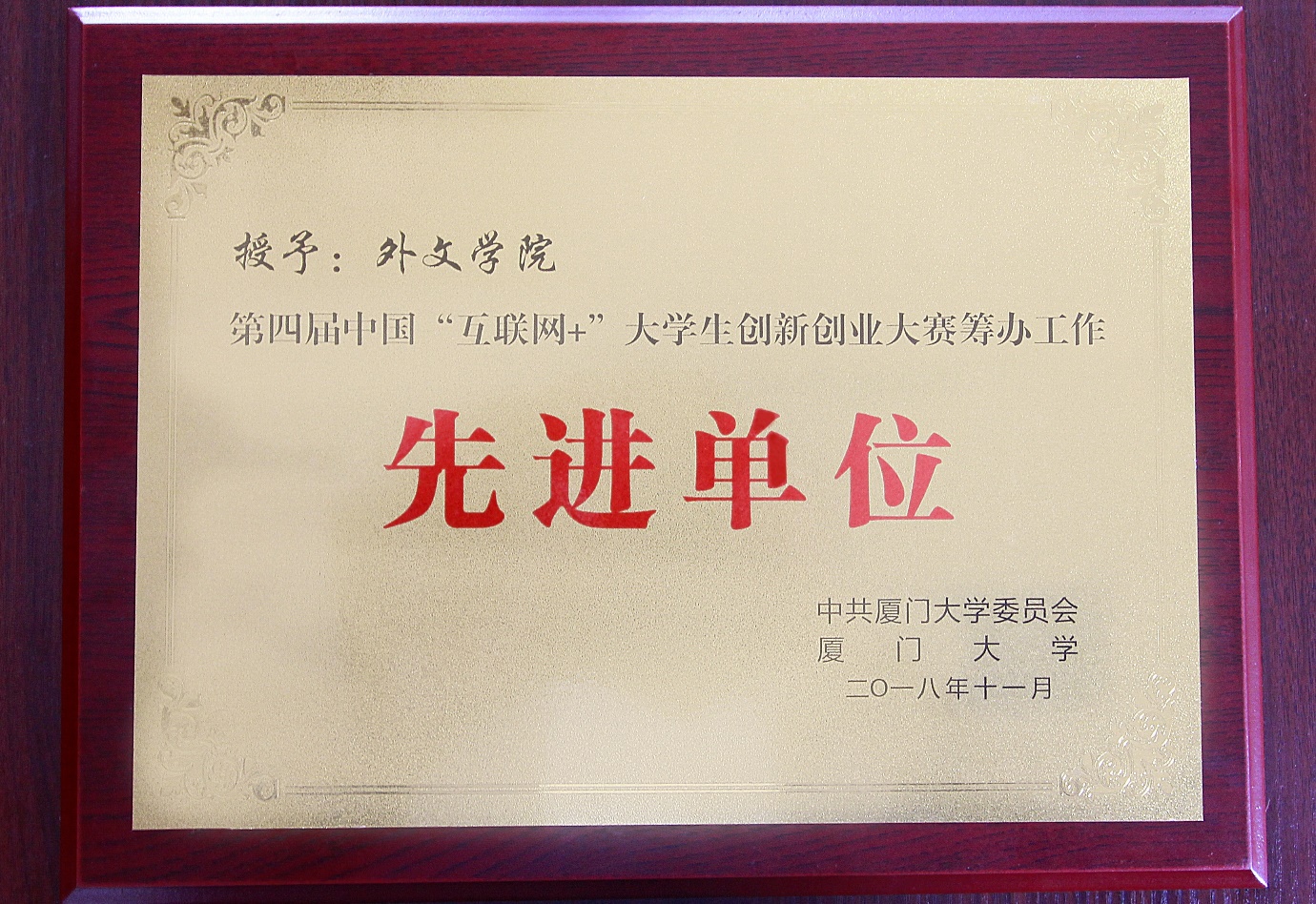 11月13日晚,第四届中国“互联网+”大学生创新创业大赛厦门大学总结表彰晚会在建南大会堂隆重举行。大会对参加第四届中国“互联网+”大学生创新创业大赛筹办工作先进单位、先进个人、优秀志愿者以及参赛组织先进单位和项目团队进行了表彰:外文学院获评筹办工作“先进单位”;外文学院杨云良、沈丽秀、乐无恙、陈雯娜、邓轶、蔡宇、杨盛澜、朱清坤、吴巳英、沈安妮、赖颖君等11位老师获评筹办工作“先进个人”,龚忻怡同学等277名志愿者获评筹办工作“优秀志愿者”。