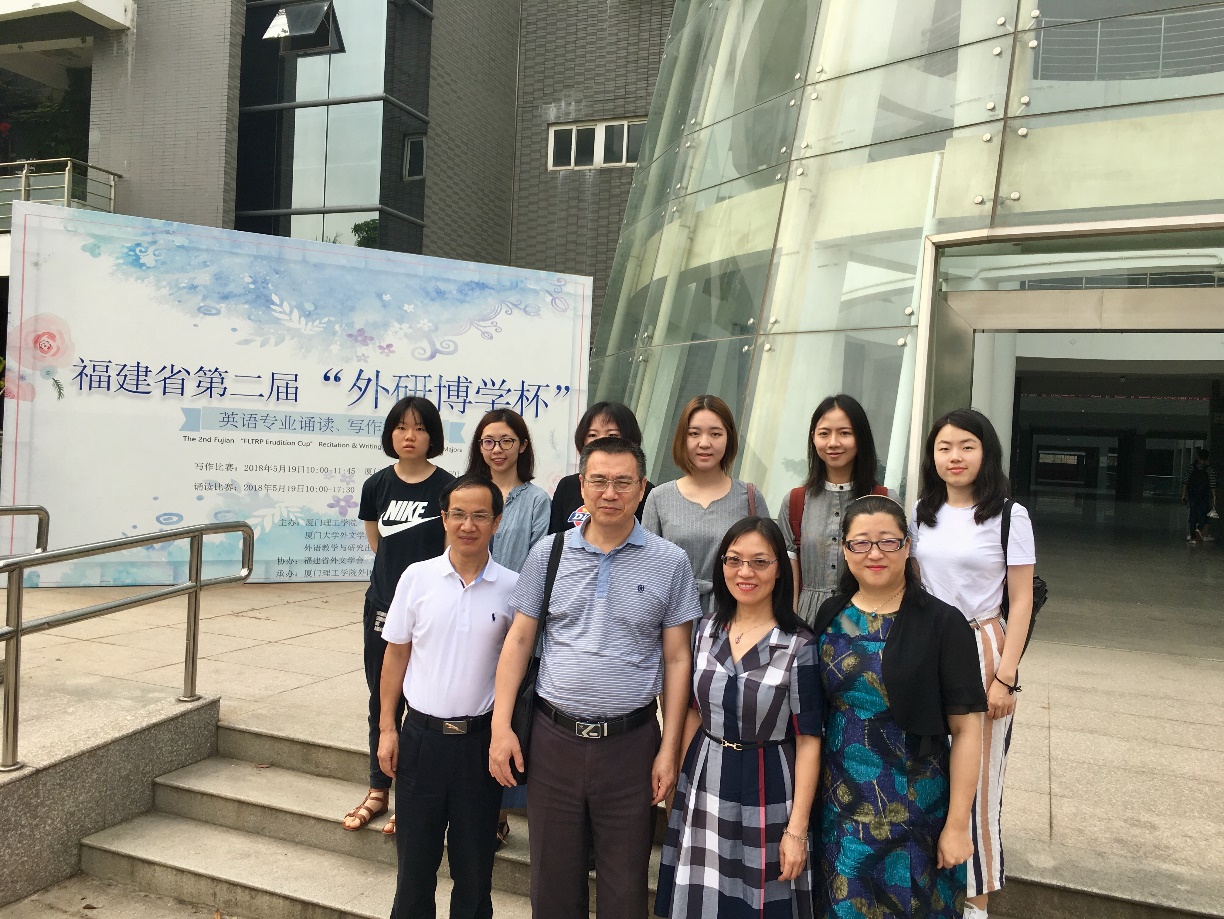 厦门大学外文学院的六位参赛选手经由校内初赛严格选拔产生,此次由外文学院英语系主任杨士焯教授、副主任林斌教授带队参加省赛。经过当日的激烈角逐,杜雪旸、万子珊最终斩获诵读比赛一等奖,赵予菲获得三等奖。在写作比赛中,黄芹冰、张君临和孙若阳分别获得一等奖、二等奖和三等奖的佳绩。最后,现场嘉宾、评委对选手们的精彩表现进行点评,现场领导、嘉宾为获奖选手颁发获奖证书并合影留念。至此,福建省第二届“外研博学杯”英语专业诵读、写作邀请赛圆满结束。参赛高校师生纷纷表示大赛充分地展示了省内高校英语专业的最高水平和风采,有效地增进了兄弟院校之间的沟通和友谊,是个不可多得的专业交流平台,期待明年的赛事更加精彩。
