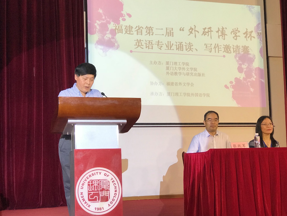 5月19日,由厦门理工学院、厦门大学外文学院和外语教学与研究出版社共同主办,福建省外文学会协办,厦门理工学院外国语学院承办的福建省第二届“外研博学杯”英语专业诵读、写作邀请赛在厦门理工学院学术报告厅顺利举行。本次邀请赛吸引了来自厦门大学、福州大学、福建师范大学、福建农林大学、华侨大学、集美大学、厦门理工学院等全省20所院校的94名选手同台竞技。