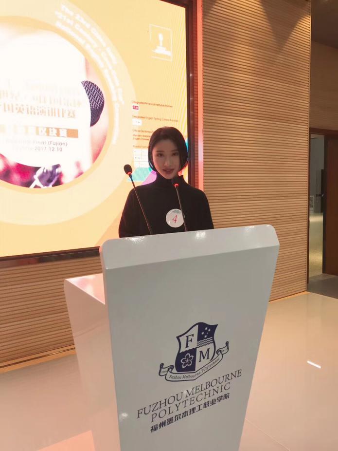 本届大赛主题为Belt and Road:China and the World(《一带一路:中国与世界》)。此次福建赛区决赛共分为三个环节:三分钟命题演讲、两分钟即兴演讲以及两分钟问答。
