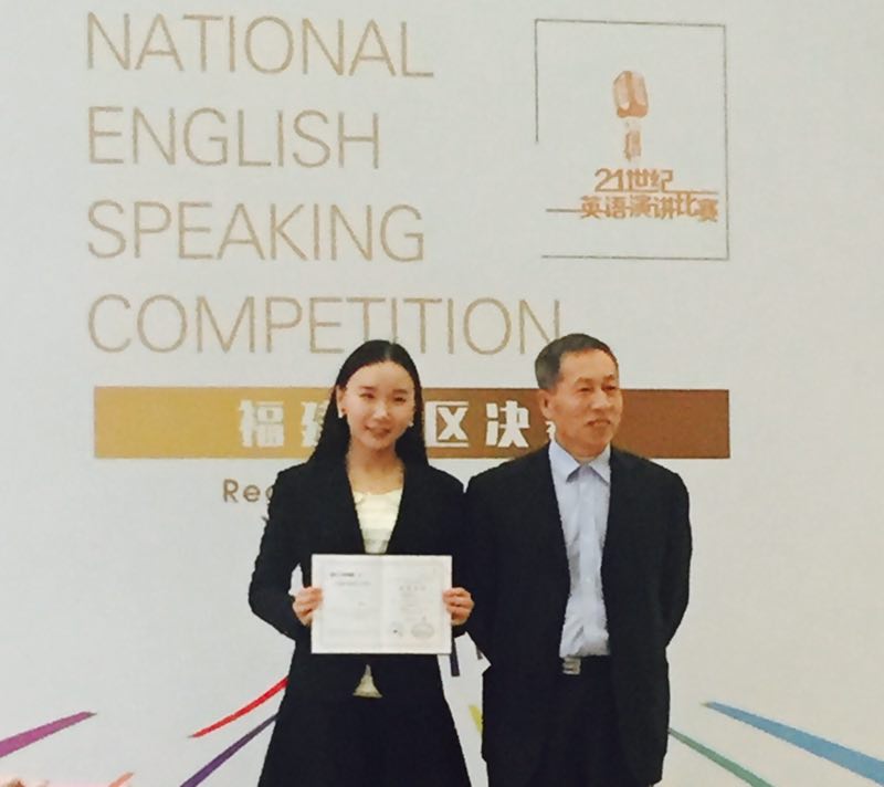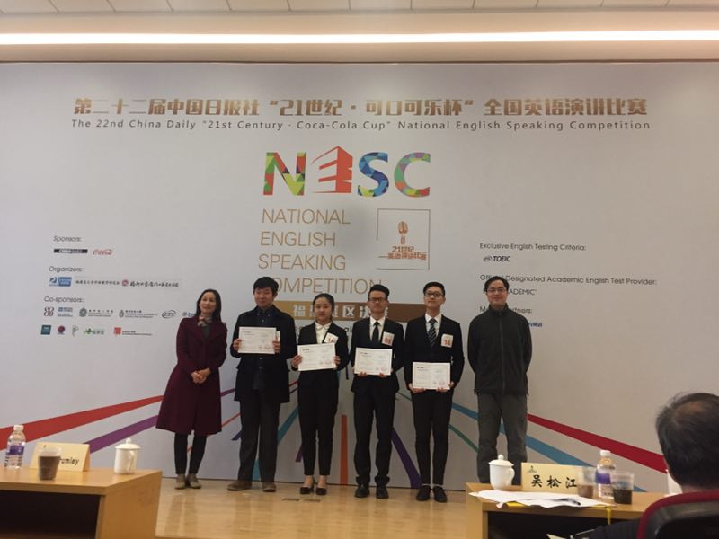 12月24日,第二十二届中国日报社“21世纪·可口可乐杯”全国英语演讲比赛福建省决赛于福州大学厦门工艺美术学院举行。我院2015级英语专业本科生杨择荟、刘翔两名同学积极备赛,英语系纪玉华教授担任指导老师,两名选手在比赛中表现优异,分获福建赛区决赛冠军奖(第一名)和一等奖(第四名)。