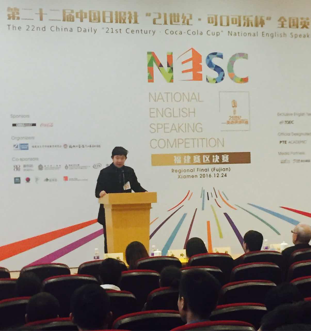 中国日报社“21世纪·可口可乐杯”全国英语演讲比赛由中国日报社于1996年发起并主办、《21世纪英文报》承办,是一场规模大、级别高、专业性强的全国性英语演讲赛事,多年来在促进跨文化交流和高水平人才培养方面取得了显著成绩。我院院长张龙海教授、英语系主任杨士焯教授对本次比赛高度重视,对两名参赛选手在赛前、赛后的努力付出与精彩表现给予了悉心指导与充分肯定,同时,他们也希望未来将继续有更多外文学子积极参加此类全国乃至全球公共英语演讲比赛,鼓励外文学子向世界讲述中国故事,传达中国的声音,日后为实现中国梦添砖加瓦。